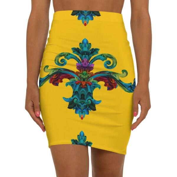 The pencil skirt is made of 88% polyester and 12% spandex. This blend gives the garment a four-way stretch which allows the fabric to stretch both width and length-wise. The garment has a slight tapering along the outer thigh to provide that signature straightened appearance.